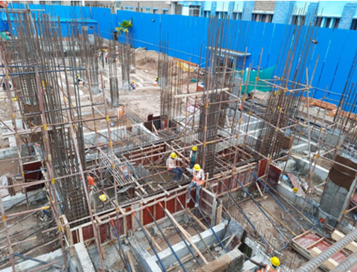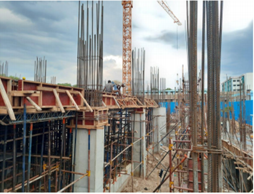 August 2021Grade beam & Column, RCC wall form work & Basement level brick work,Staging work for GF-Roof slab Dt. 04.08.2021